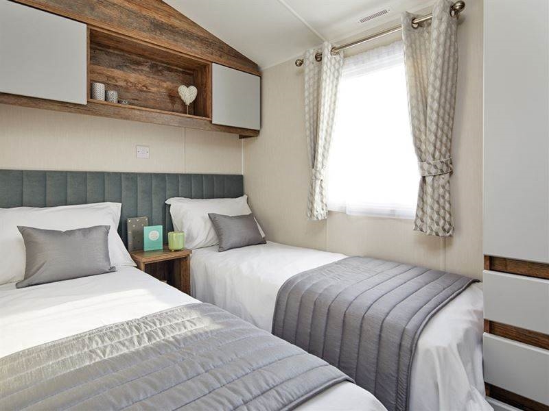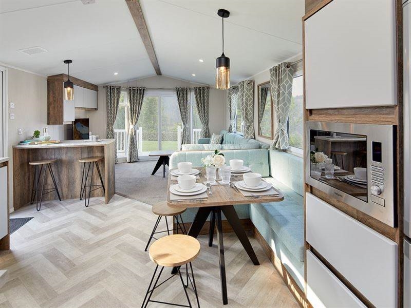 he Willerby Brookwood Model is a stunning luxury holiday home ideal for all the family with lots of space. The modern, spacious and very practical holiday home is the perfect home from home. It comes fully fitted with modern UPVC double glazed windows & patio doors a large open plan living area ideal for a all the family, . Explore our brand-new Willerby Brookwood caravan for sale - part of our Premium range of holiday homes. Also a gas combi boiler central heating system flame effect electric fire to ensure you and your family are kept warm whatever the time of year. Separate hall and storage for added space and doors to keep the children in peace when sleeping. The Brookwood is bright with neutral modern fixtures and fittings, and the lounge benefits from a full wrap around comfort sofa and also a large built in fridge freezer in the kitchen, plus Microwave which comes fully fitted with high spec appliances, and the spacious free-standing dining table and chairs this is ideal for the family to sit down for a family meal with lots of space to spread out. This stunning home sleeps up to 8 people and boasts 3 well-appointed bedrooms Plus a fold out double bed in the lounge, a large family shower room all make the Brookwood an all-round family caravan.